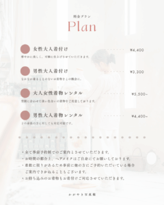 かがやき写真館のパパママお着物レンタル・着付けサービスは、